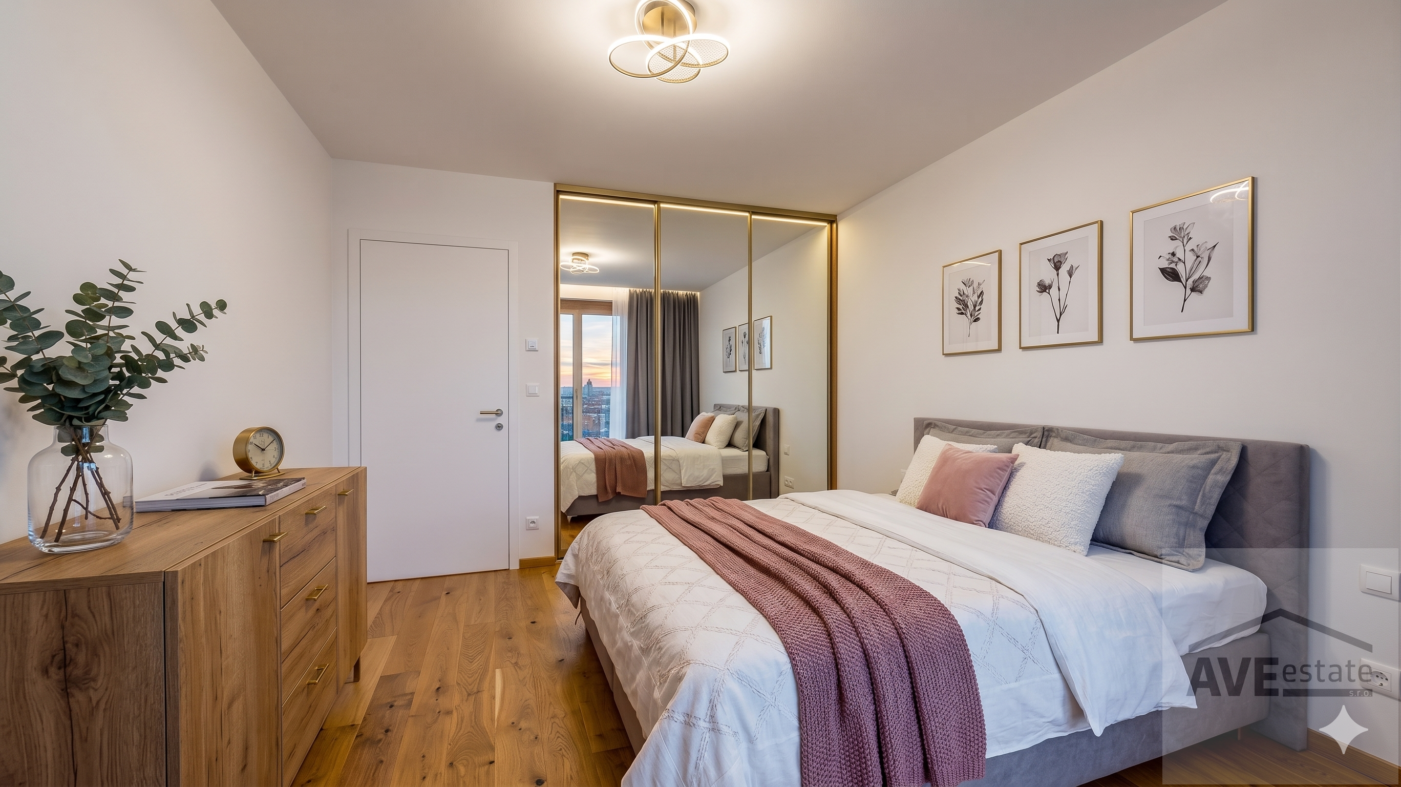 AVE estate Vám s radosťou predstavuje dvojizbový byt zariadený na mieru v populárnej/ obľúbenej novostavbe vo výbornej lokalite ihneď pri OC Nivy, Dulovom námestí a s pešou dostupnosťou do centre mesta.
