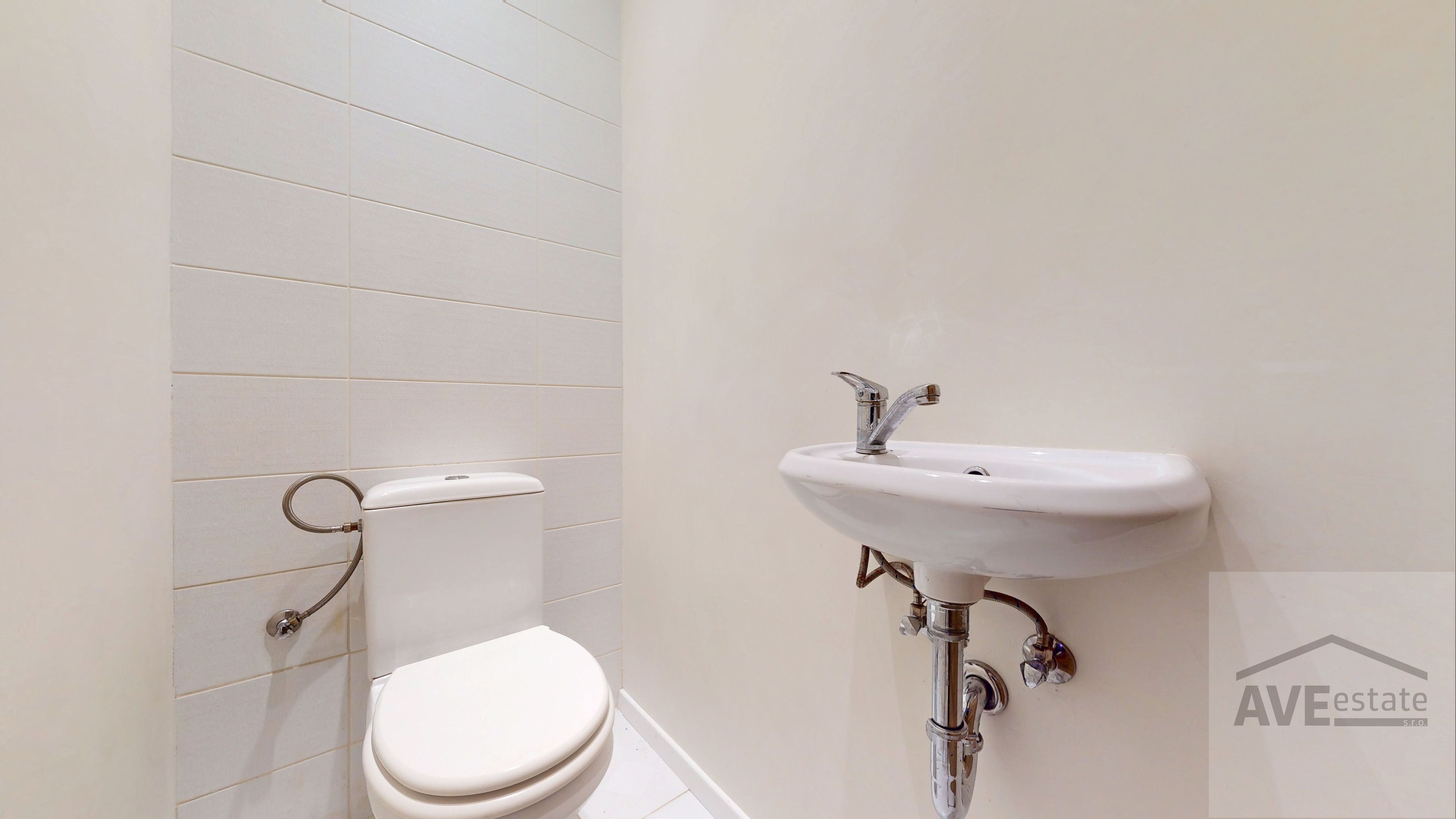 Byt má rozlohu 97 m² a patrí k nemu aj pivnica (20 m²) v suteréne. Dispozícia je premyslená a praktická – vstupná chodba, samostatné WC, veľká obývacia izba, samostatná kuchyňa s jedálňou, priestranná spálňa, samostatná pracovňa a kúpeľňa s dvomi umývadlami a sprchovacím kútom.