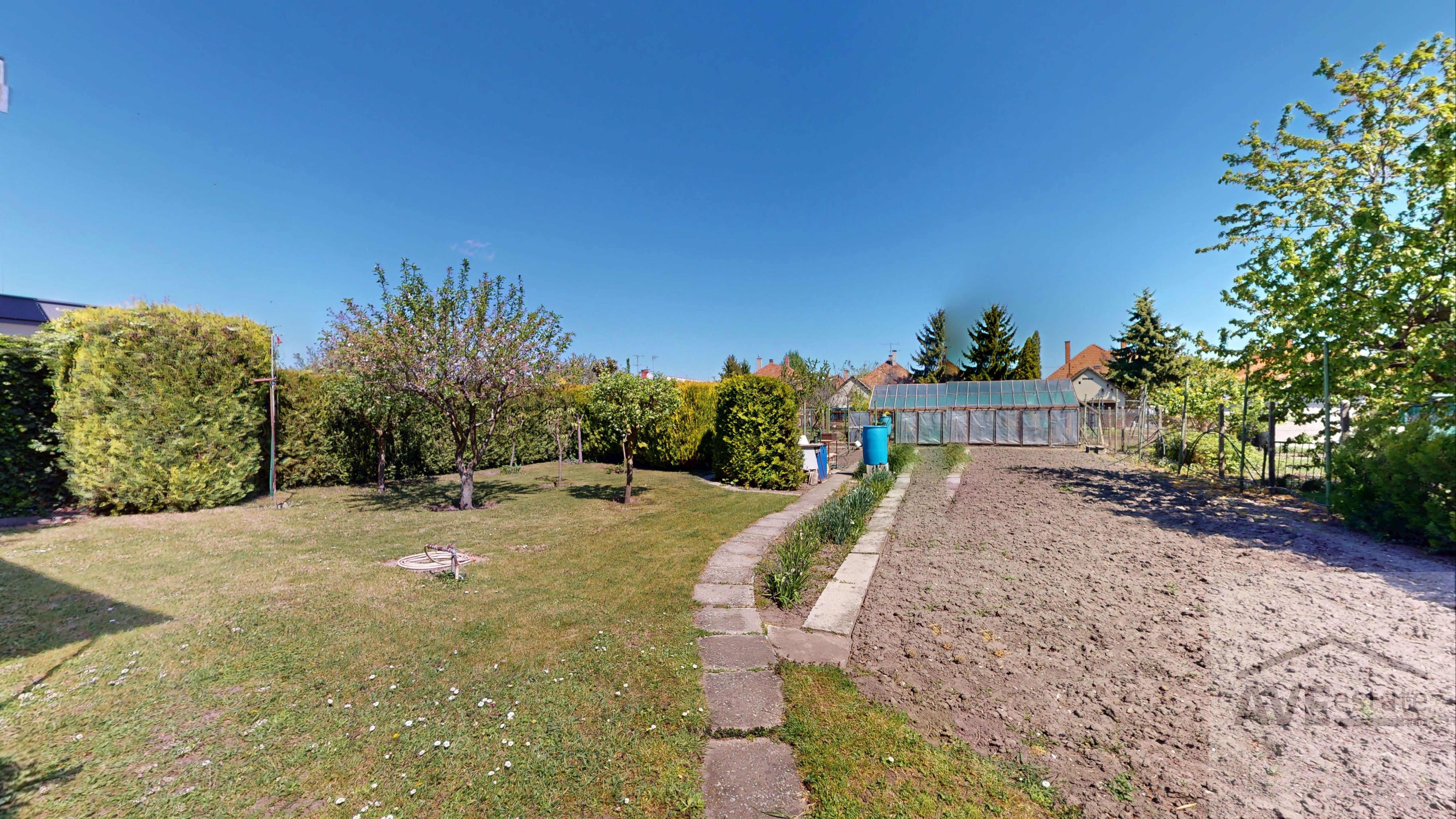 Na pozemku sa aktuálne nachádza úžitková záhrada so skleníkom.