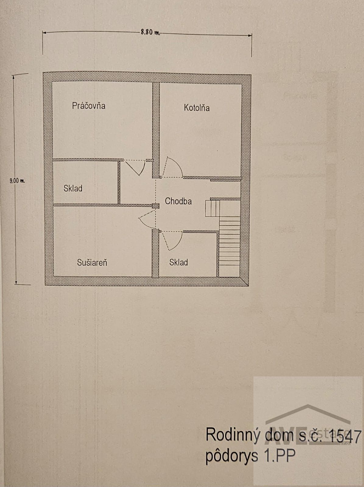 Suterén sa skladá z vstupnej chodby, sušiarne, skladov, kotolne a práčovne.