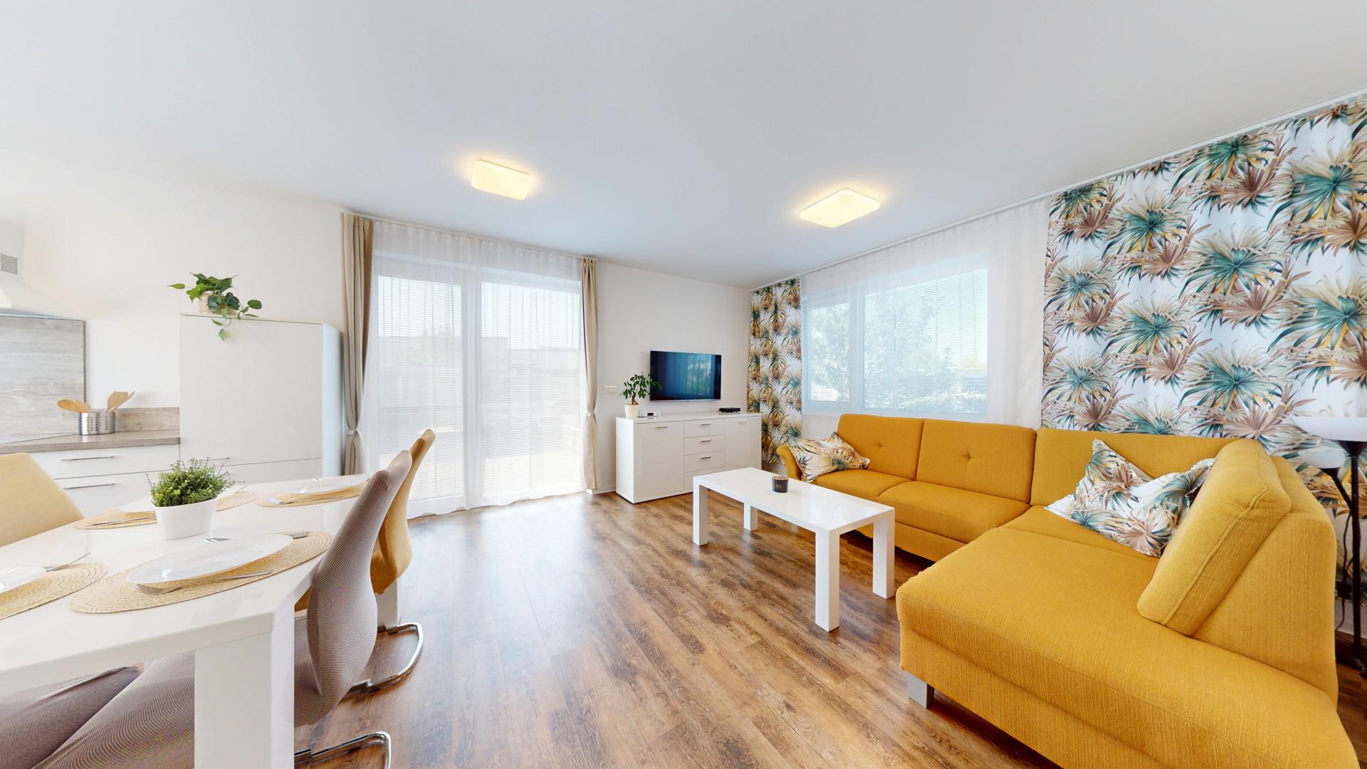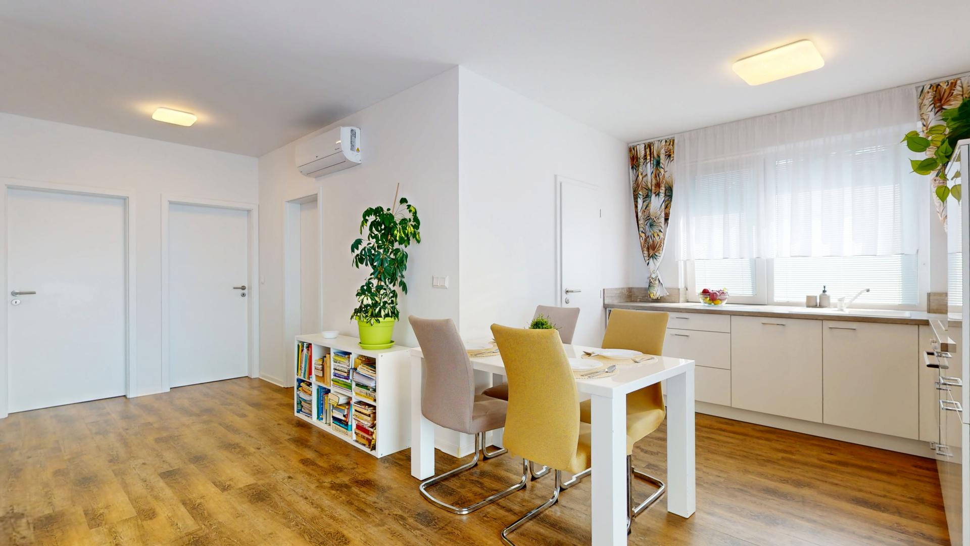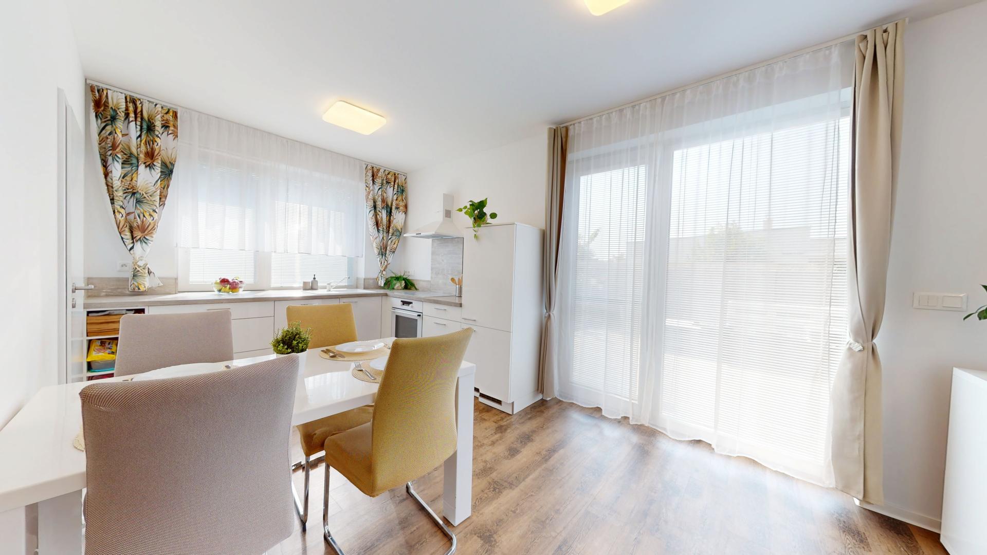Dom má výbornú dispozíciu: samostatná vstupná chodba, obývacia izba spojená s kuchyňou so vstupom na priestrannou terasu, technická miestnosť /špajza/, kúpeľňa so sprchovým kútom a WC, dve samostatné izby.
