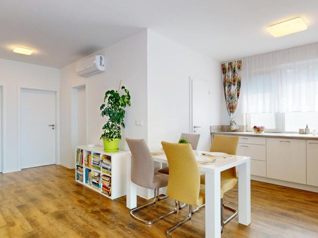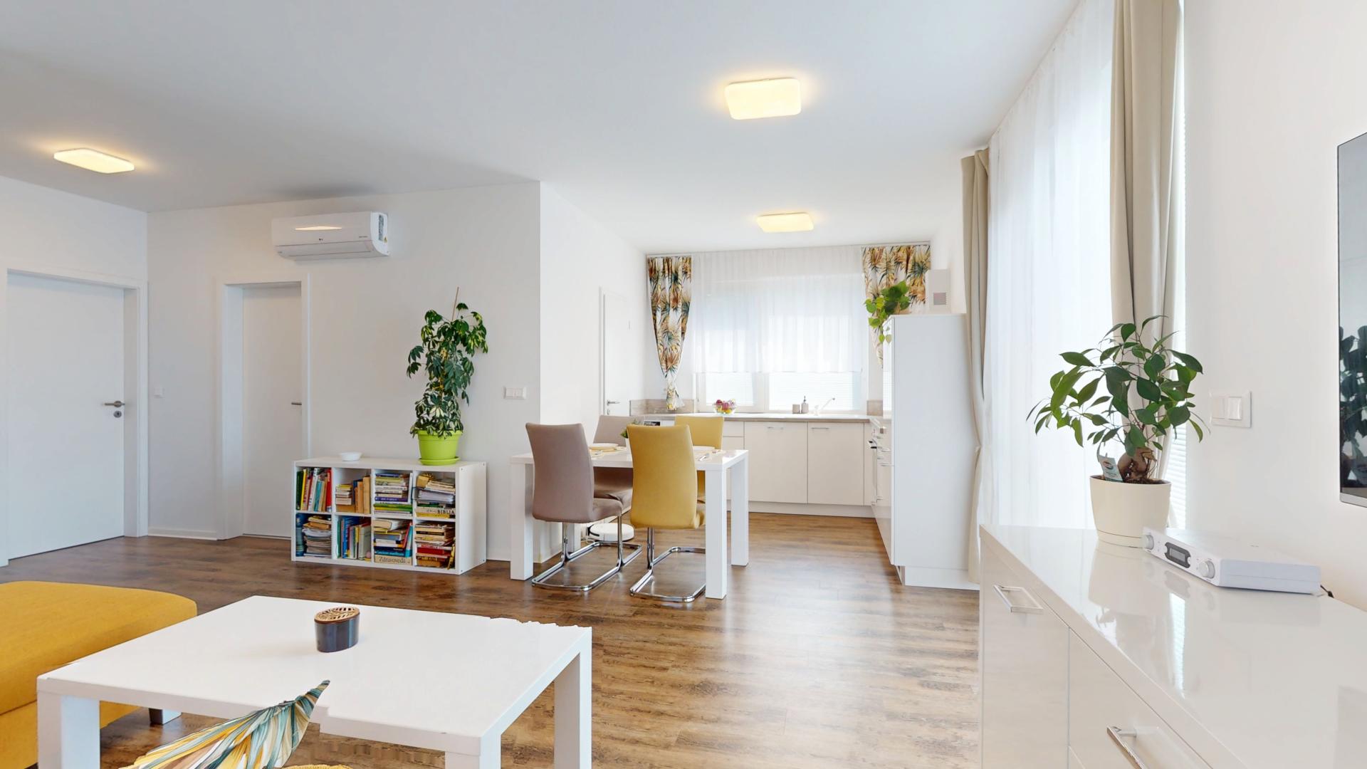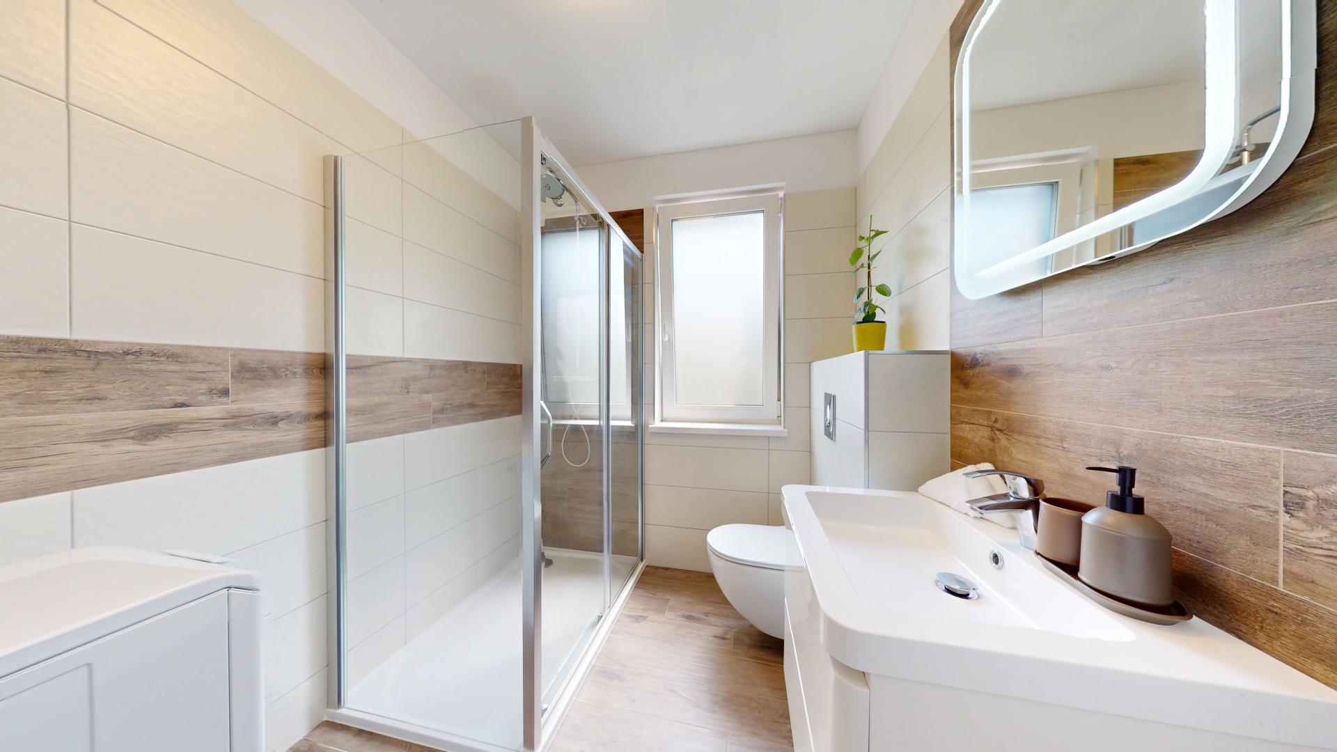 Dom má výbornú dispozíciu: samostatná vstupná chodba, obývacia izba spojená s kuchyňou so vstupom na priestrannou terasu, technická miestnosť /špajza/, kúpeľňa so sprchovým kútom a WC, dve samostatné izby.
