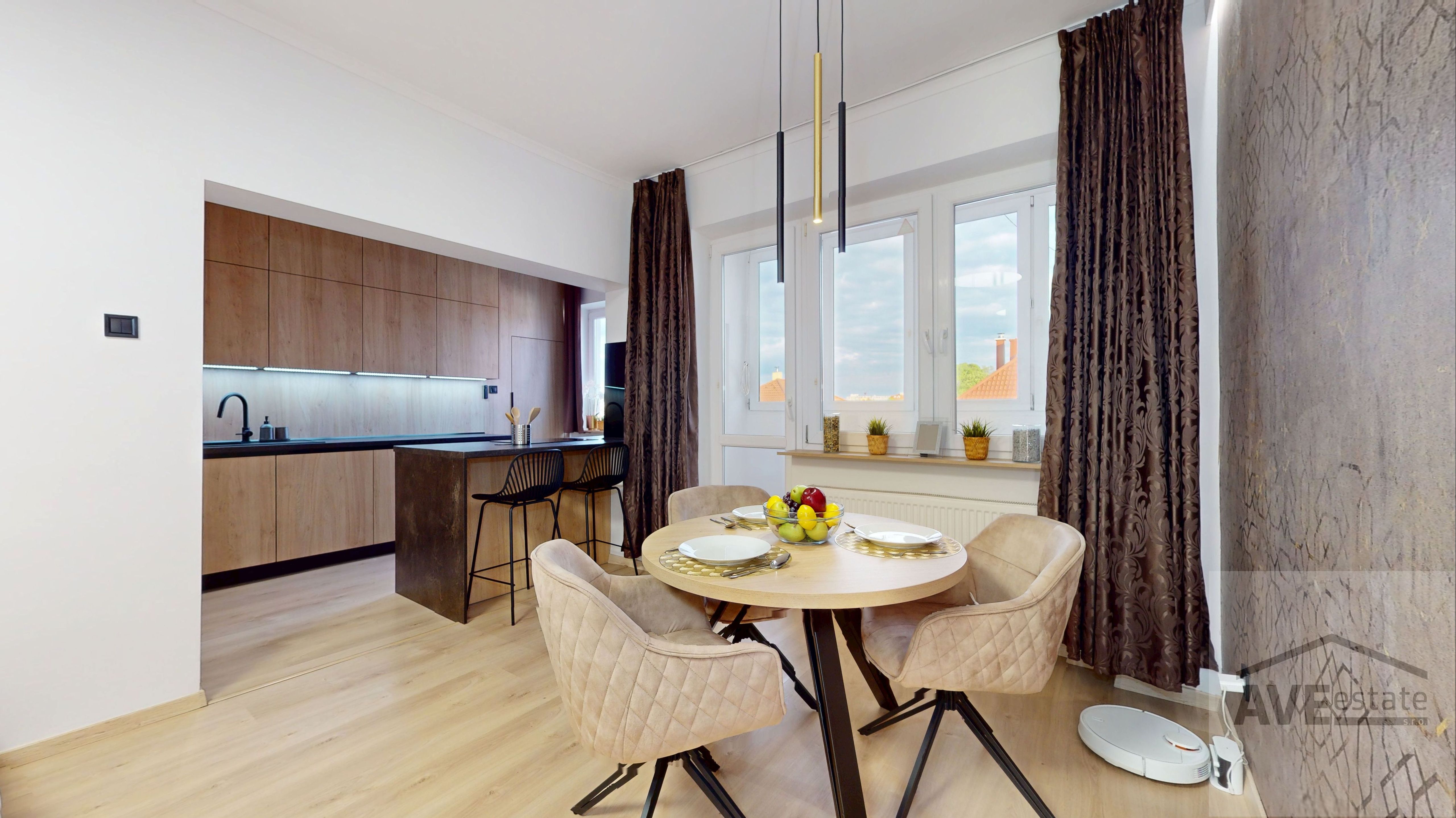 Celý interiér bol hĺbkovo obnovený – vymenené všetky inžinierske siete, podlahy, dvere aj okná s izolačným sklom. Byt je kompletne zariadený nábytkom vyrobeným na mieru, ktorý maximálne využíva priestor a zároveň zachováva vzdušnosť a estetickú čistotu. Kúrenie a ohrev teplej vody zabezpečuje vlastný plynový kotol, čo vám dáva plnú kontrolu nad spotrebou a nákladmi.