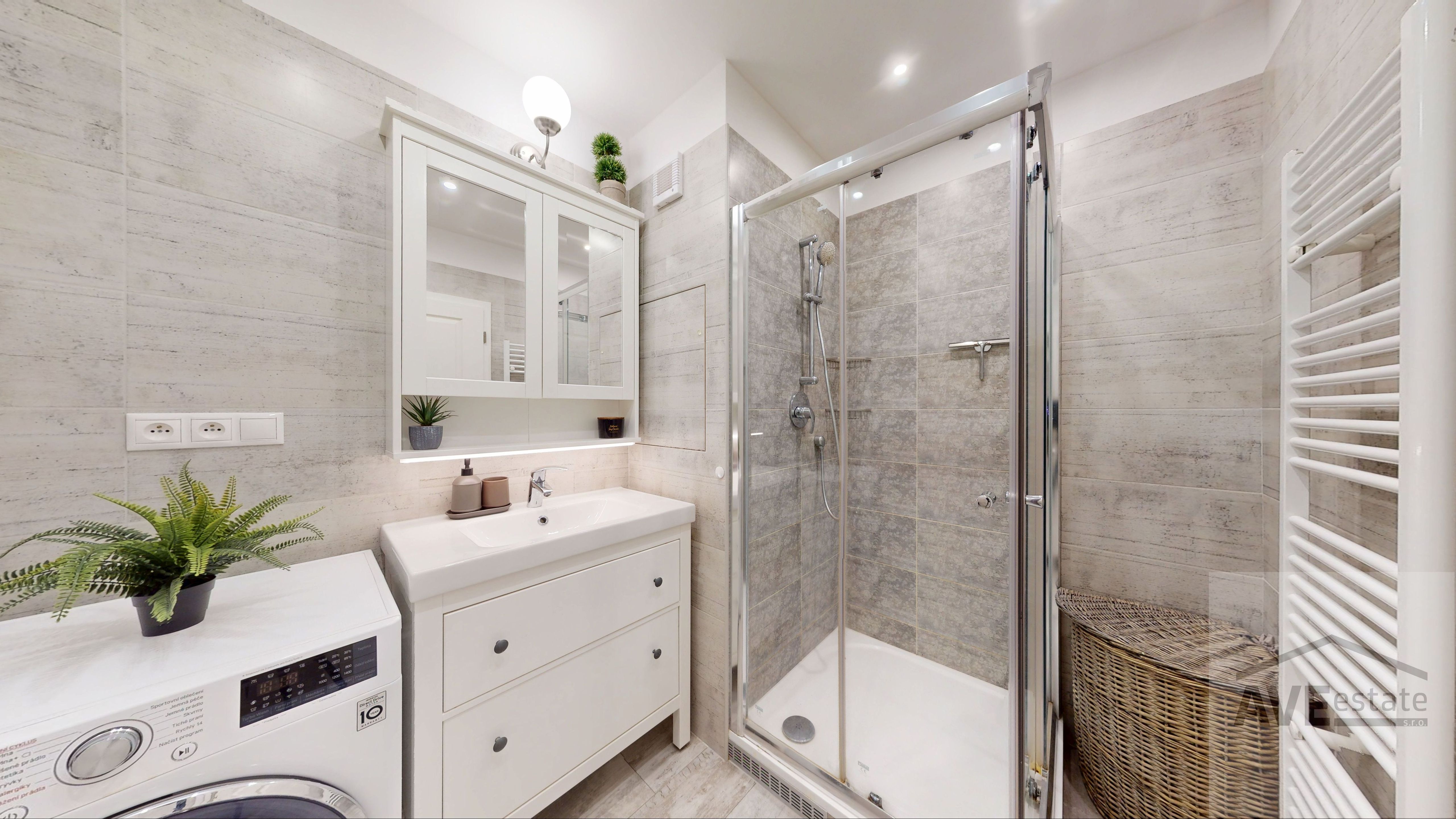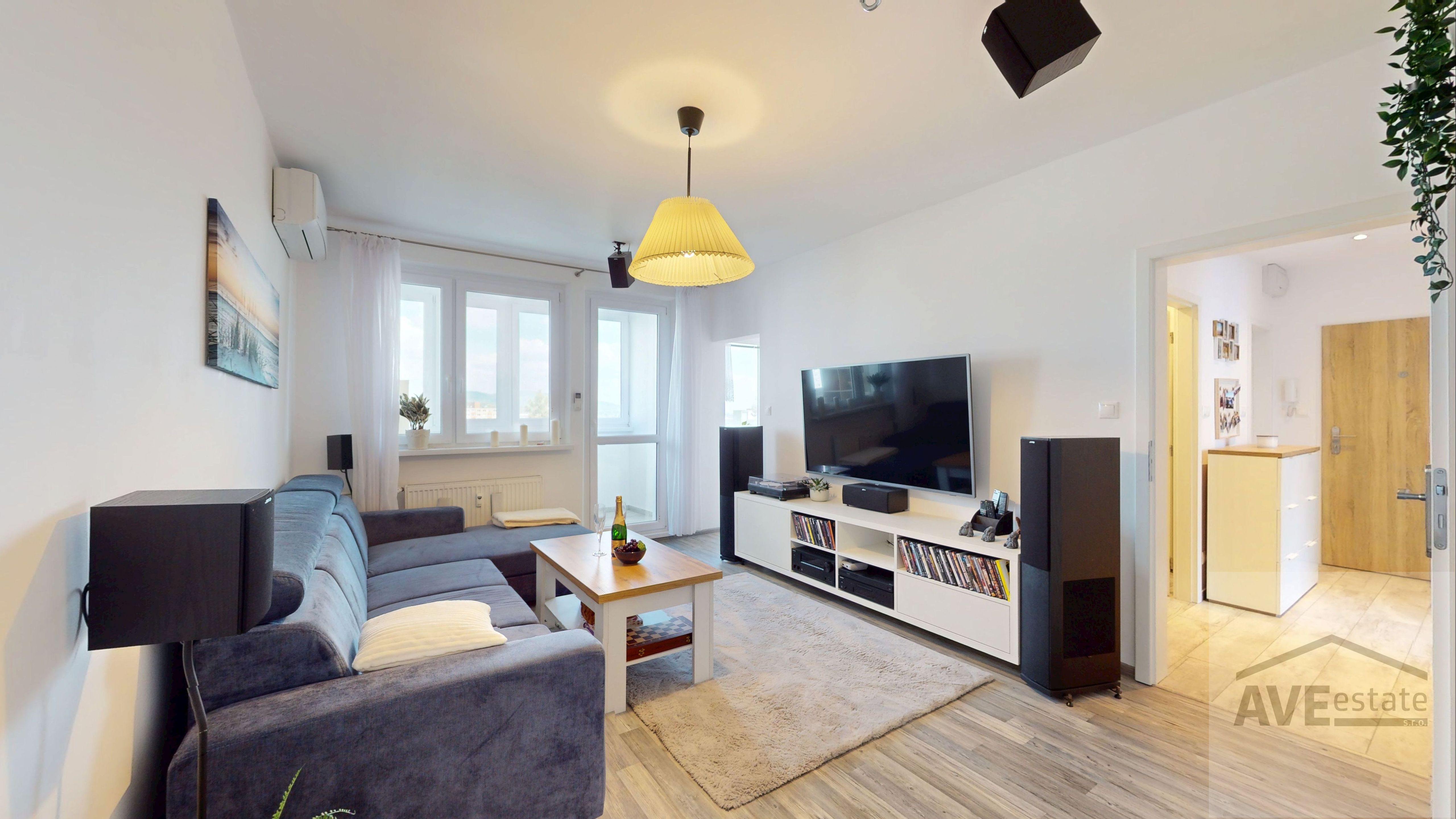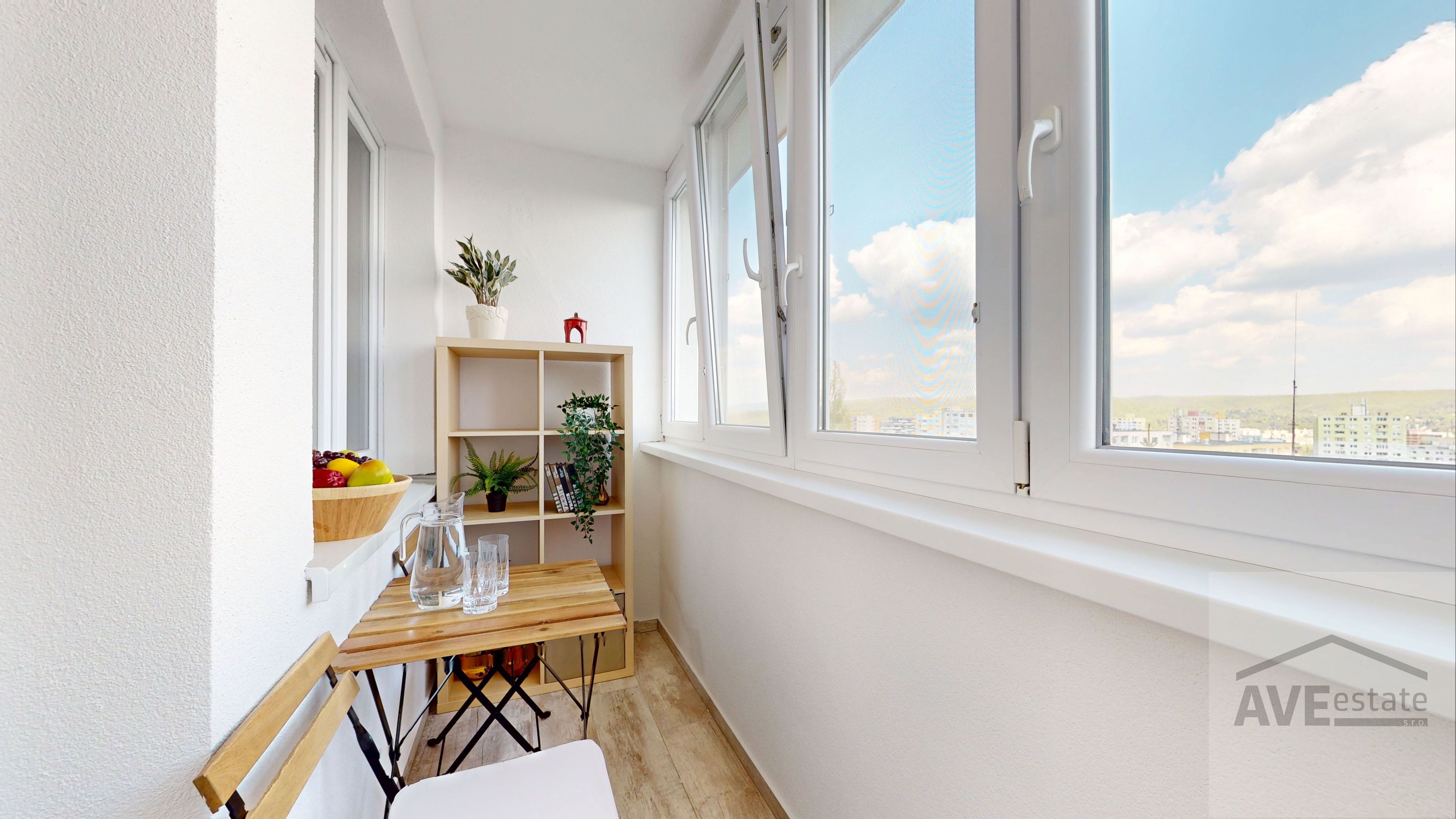 Byt je vybavený bezpečnostnými dverami ADLO, klimatizáciou a termoizolačnou okennou fóliou Skyfol, vďaka čomu je v ňom príjemne po celý rok.