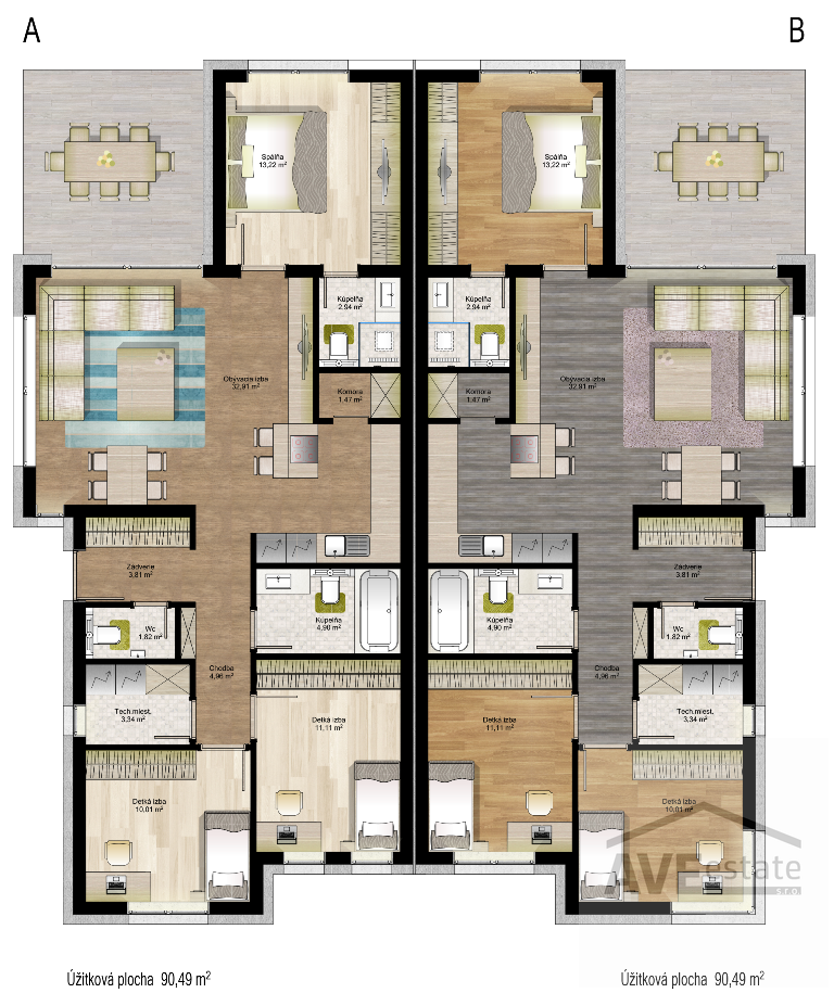 AVE estate ponúka na predaj 4 izbové rodinné domy, ktoré sú súčasťou obľúbených dvoj-domov v novo vybudovanej tichej lokalite obce Dunajský Klátov. Zastavaná plocha domu je 113m2, úžitková plocha 90m2. Každá polovina domu ma vlastný pozemok o výmere cca 358m2.
