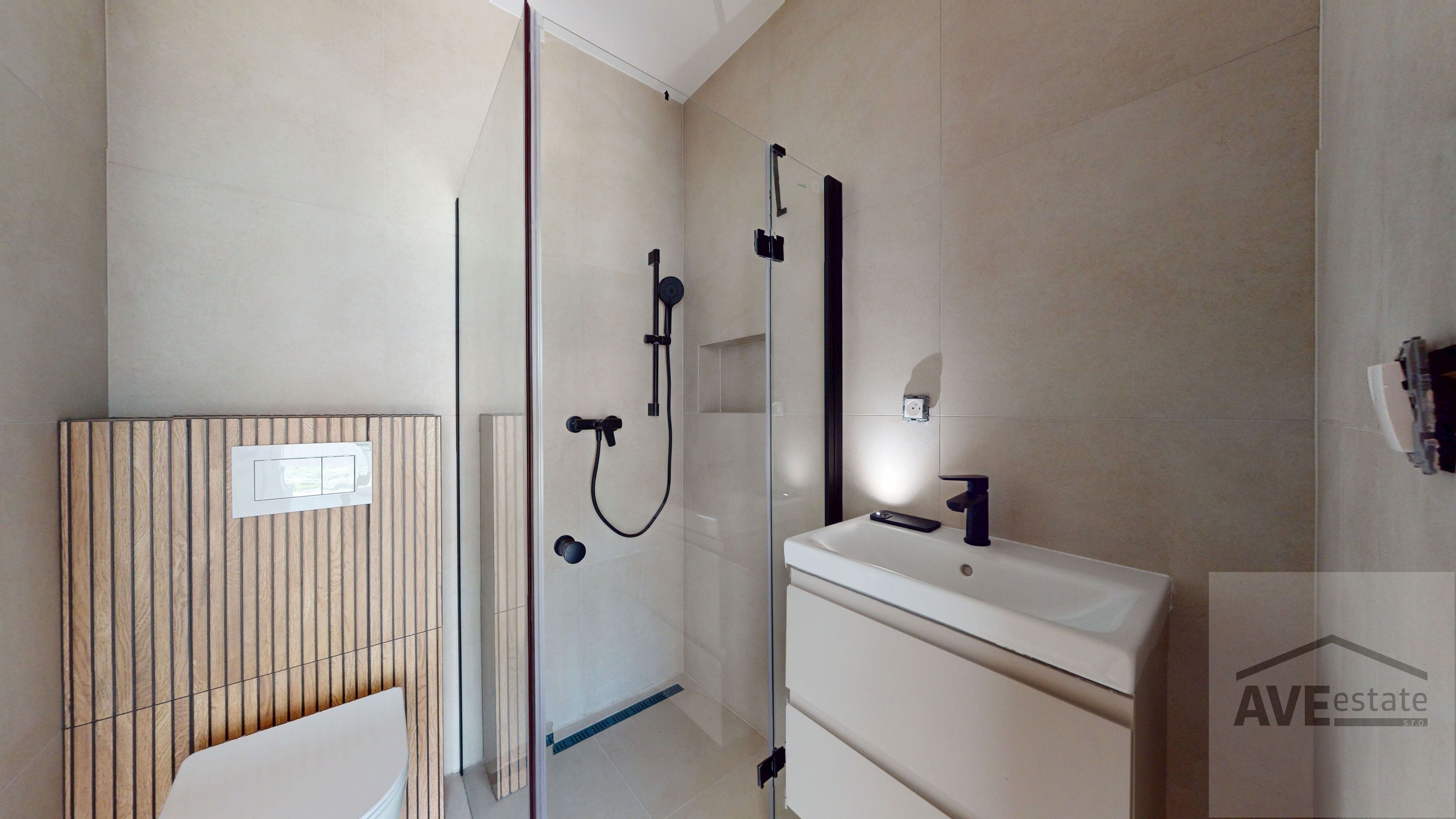Výborná dispozícia rodinného domu sa skladá zo vstupnej chodby so samostatným WC, kuchyňa spojená s obývacou izbou a vstupom na terasu, špajza, spálňa s vlastnou kúpeľňou (sprchový kút a WC), dve samostatné izby, technická miestnosť, kúpeľňa s vaňou, umývadlom a WC.