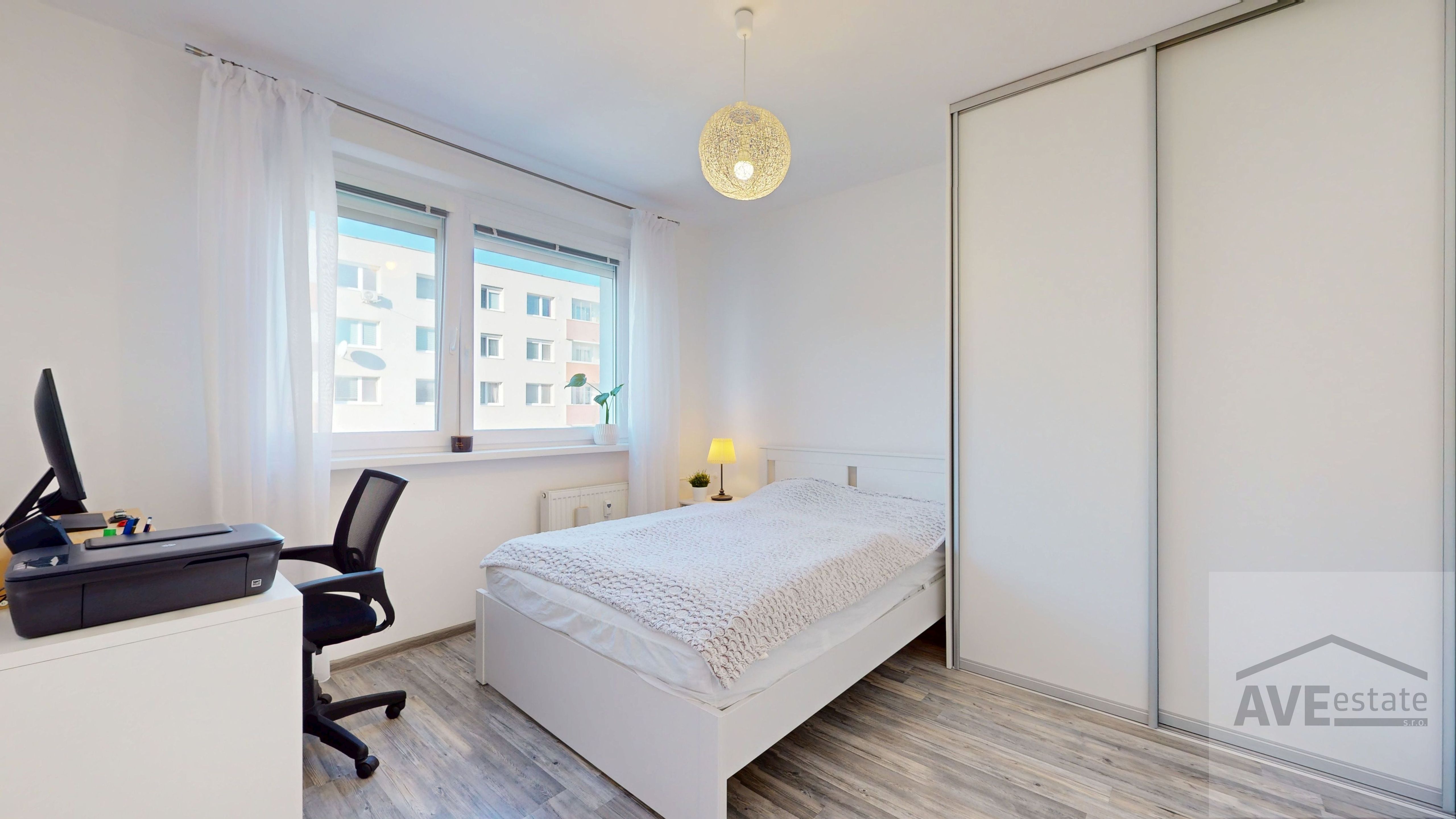 vstupná chodba, svetlá obývacia izba s výstupom na loggiu, samostatná kuchyňa prepojená s obývačkou, dve samostatné spálne so vstavanými skriňami, murovaná kúpeľňa so sprchovým kútom a samostatné WC.