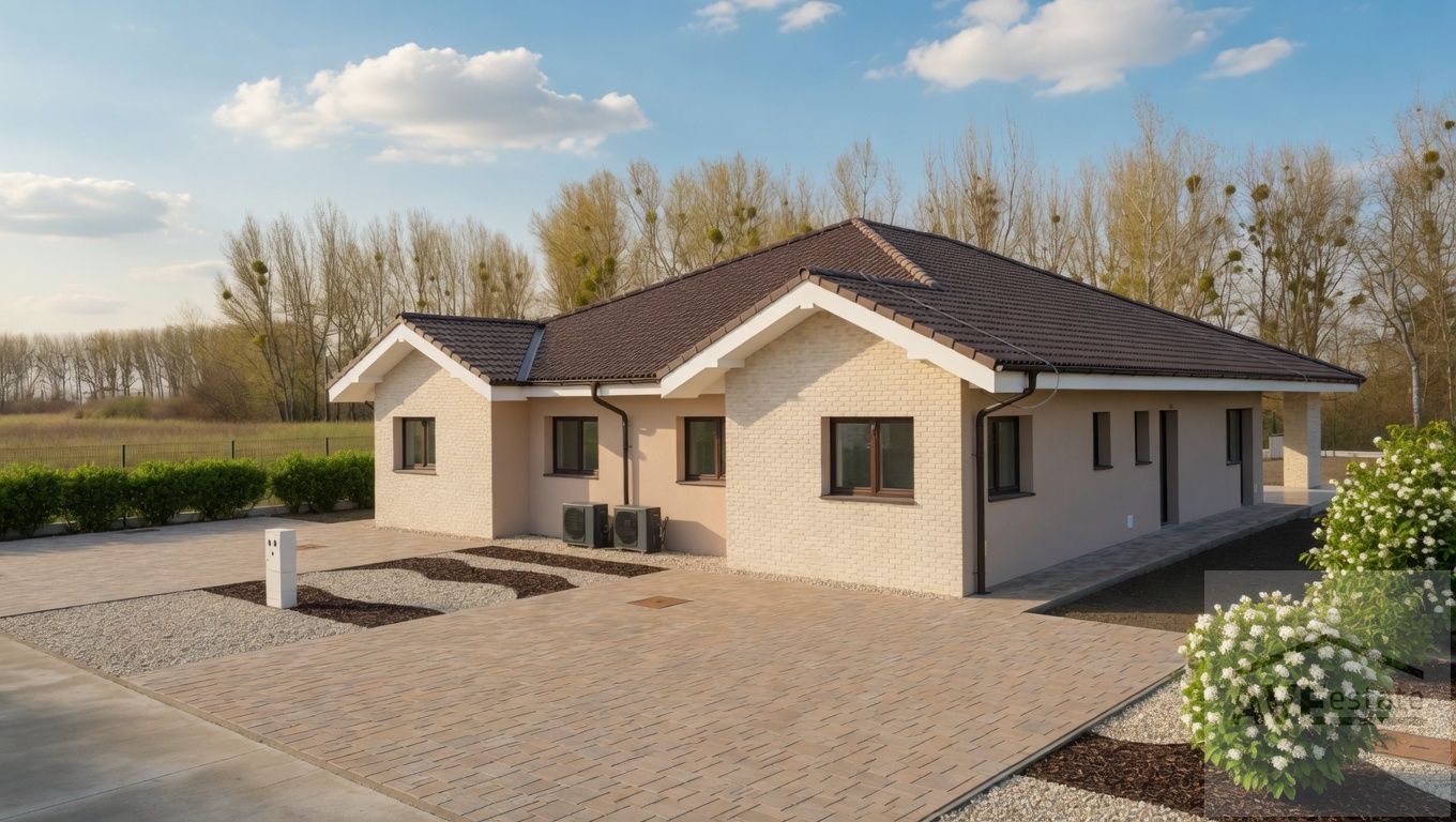 Rodinný dom je postavaný z tehly, zateplený, plastové okná s izolačným troj-sklom, strecha je riešená klasickým krovom, s vybudovanou povalou. Dom je napojený na všetky IS /voda, elektrina, žumpa/. Kúrenie, chladenie a ohrev teplej vody zabezpečuje tepelné čerpadlo. V lokalite je pripravená kanalizácia.