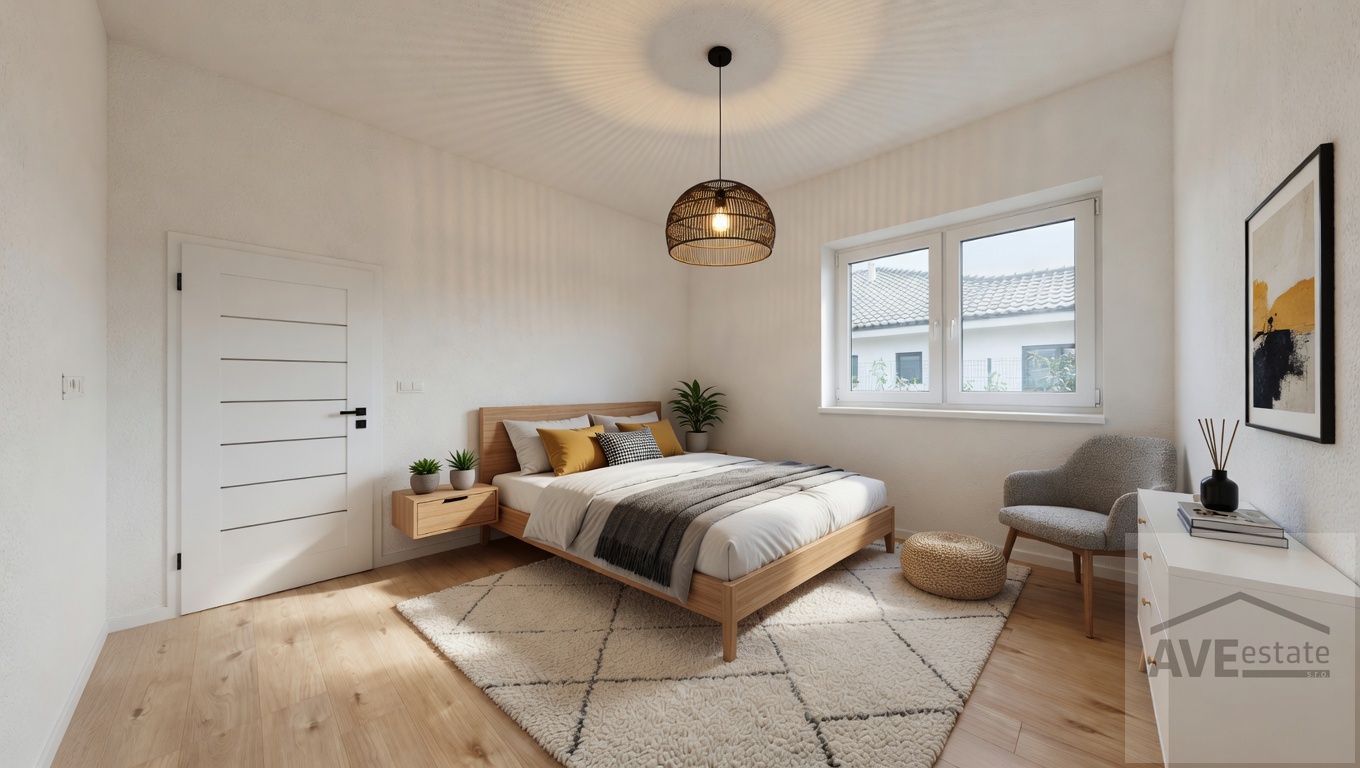 Výborná dispozícia domu: vstupná chodba so samostatným WC, priestranná obývacia izba spojená s kuchyňou a vstupom na terasu, spálňa s vlastnou kúpeľňou /WC, sprchový kút, umývadlo/, dve samostatné izby, technická miestnosť, druhá kúpeľňa /WC, vaňa, umývadlo/.