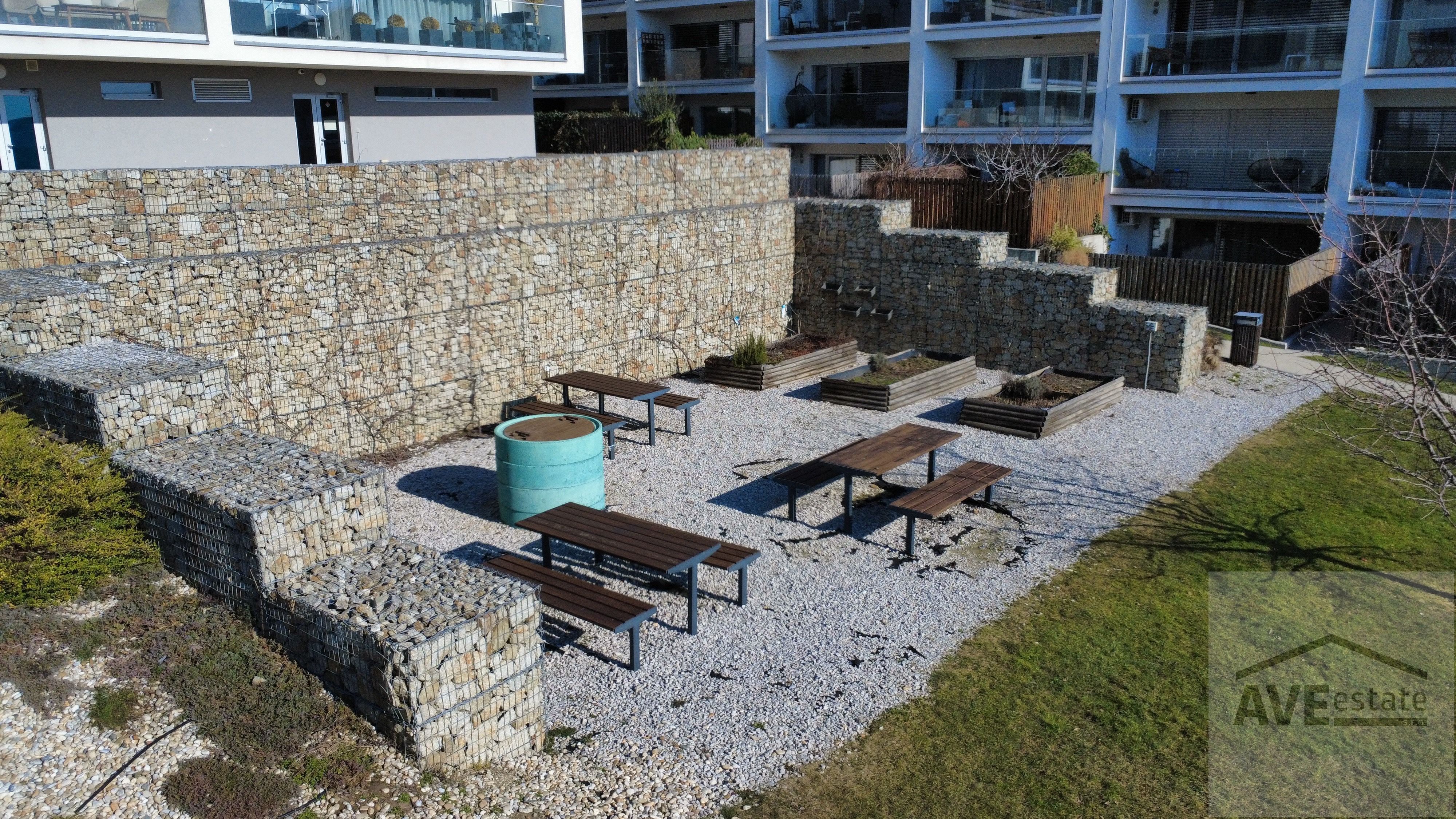 Byt sa nachádza v uzavretom rezidenčnom areáli s udržiavanou zeleňou, dvoma detskými ihriskami, komunitnou záhradou a vyhradeným miestom na grilovanie pre rezidentov.