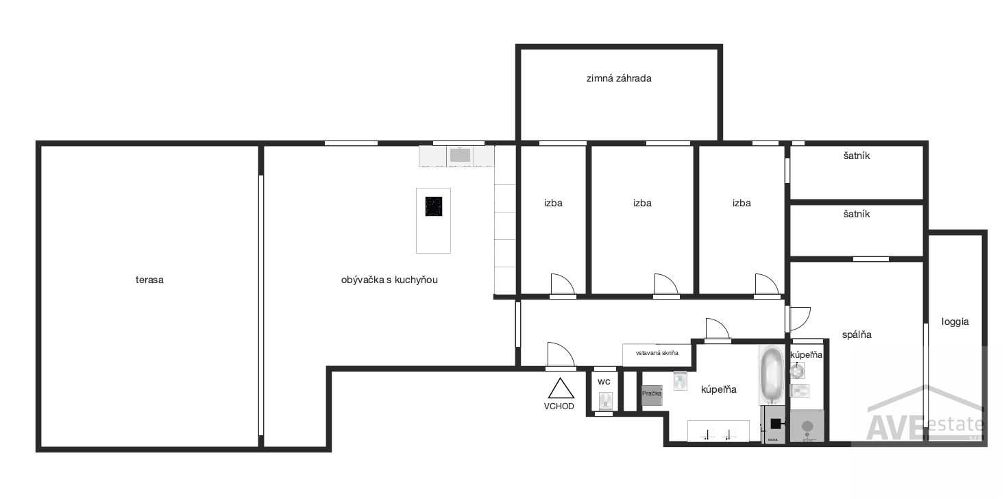 Komfort dopĺňa veľkorysá terasa o výmere 60 m² s jacuzzi, zimná záhrada (15 m²), loggia (10 m²) a pivnica (18 m²).