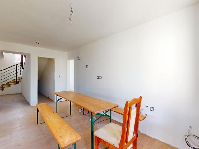 Ponúkame na predaj kompletne zrekonštruovaný samostatný 6 izbový rodinný dom v tichej ulici Pentelská, Horné Mýto. Rodinný dom je postavaný na rovinatom pozemku o celkovej výmere 975m2, zastavaná plocha domu je 125m2. Úžitková plocha 250m2. K domu patrí vlastné parkovacie miesta a slnečná terasa. Výborná dispozícii vhodná aj pre väčšiu rodinu: PRÍZEMIE: vstupná chodba so šatníkom /umiestenie technológie alarmu, internetu/, obývacia izba spojená s kuchyňou, 2x samostatná izba, kumbál pod schodmi, kúpeľňa s WC a vaňou, vchod na pozemok a terasu, priestor pod schodmi. 1.N.P.: samostatná kúpeľňa so sprchovým kútom, WC, izba so vstupom na balkón, izba so šatníkom alebo priestorom na pracovňu, izba. Dom prešiel hĺbkovou a kompletnou rekonštrukciu: kompletne nová fasáda, zámkové dlažby, omietky, rozvody elektriny, vody, odpadov, plynu, nové zábradlia, dlažby, obklady, nové kúrenie, nové rozvody alarmu, internetu. Dom je možné dokončiť podľa vlastných predstáv. Samotné dokončenie vieme realizovať vrátanie terénnych úprav. Do domu sú napojené všetky IS /voda, elektrina, plyn, žumpa/ Pozemok je aktuálne vyčistený a pripravený na oplotenie a dokončenie. Cena domu je 189 900 eur s možnosťou dokončenia. Dom je možné financovať pomocou hypotekárneho úveru. Bez ťarch.