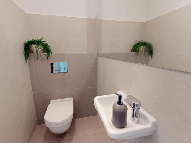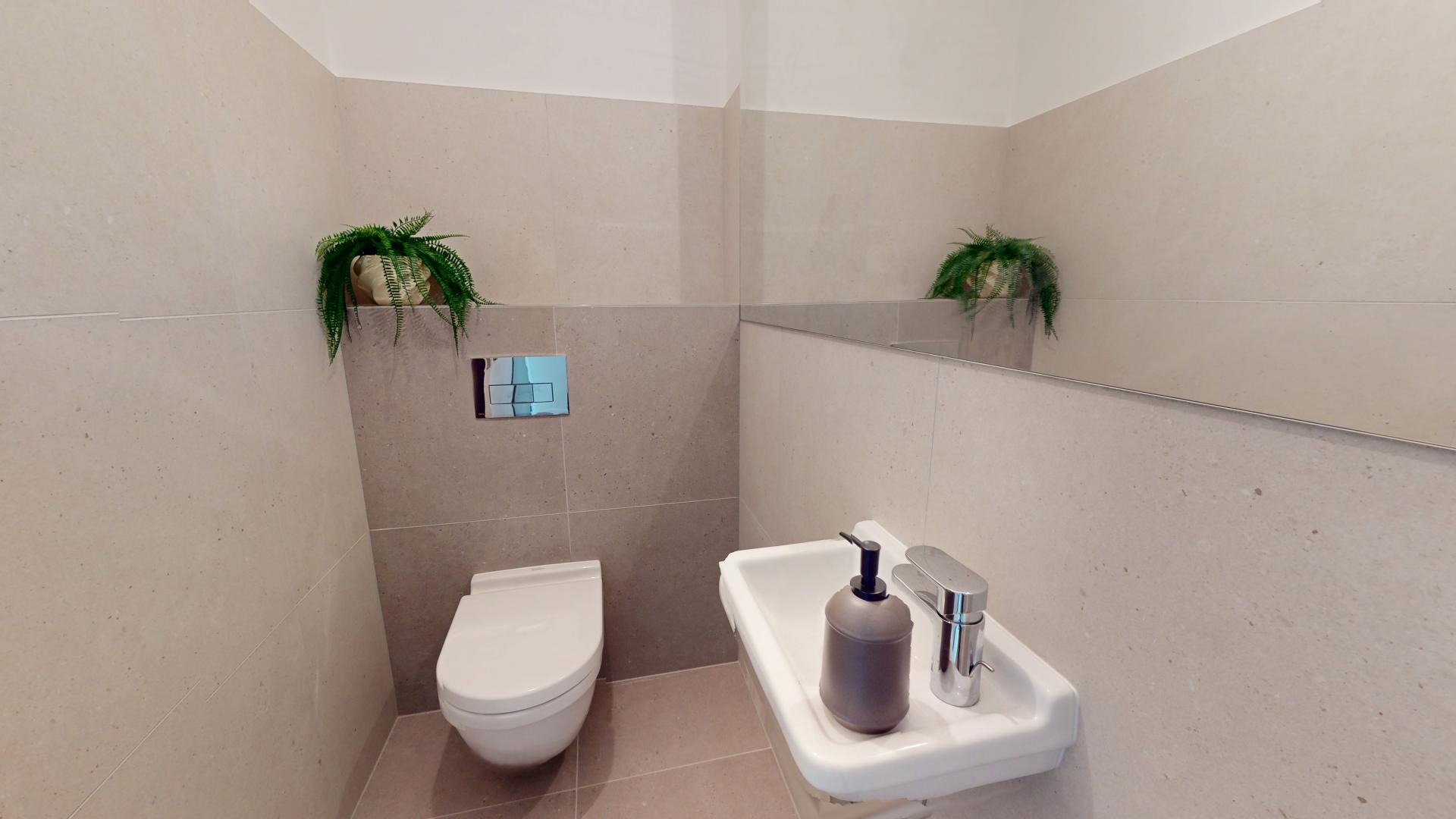 - veľkoformátový keramický obklad v kúpeľni a WC