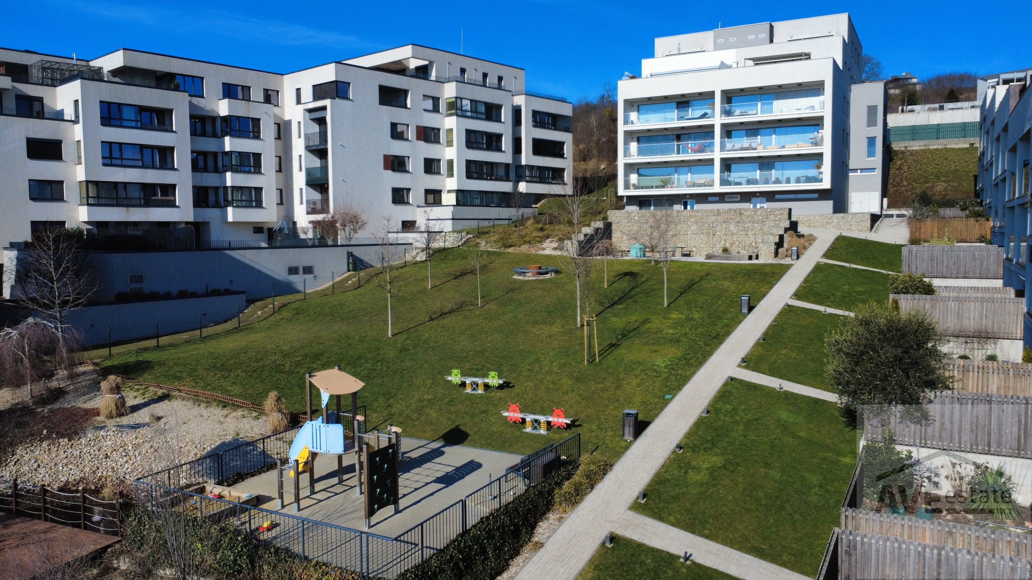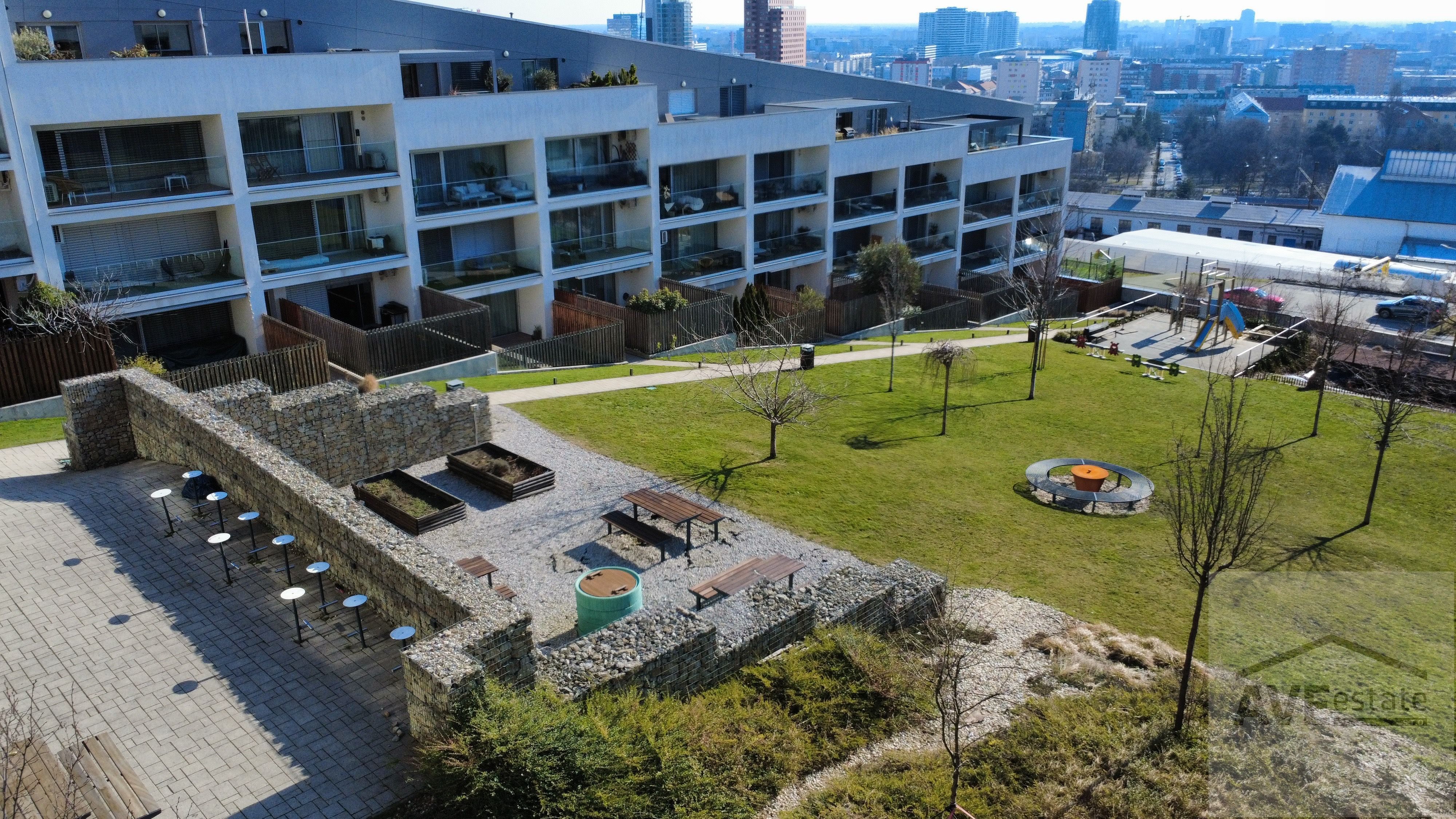 Byt sa nachádza v uzavretom rezidenčnom areáli s udržiavanou zeleňou, dvoma detskými ihriskami, komunitnou záhradou a vyhradeným miestom na grilovanie pre rezidentov.