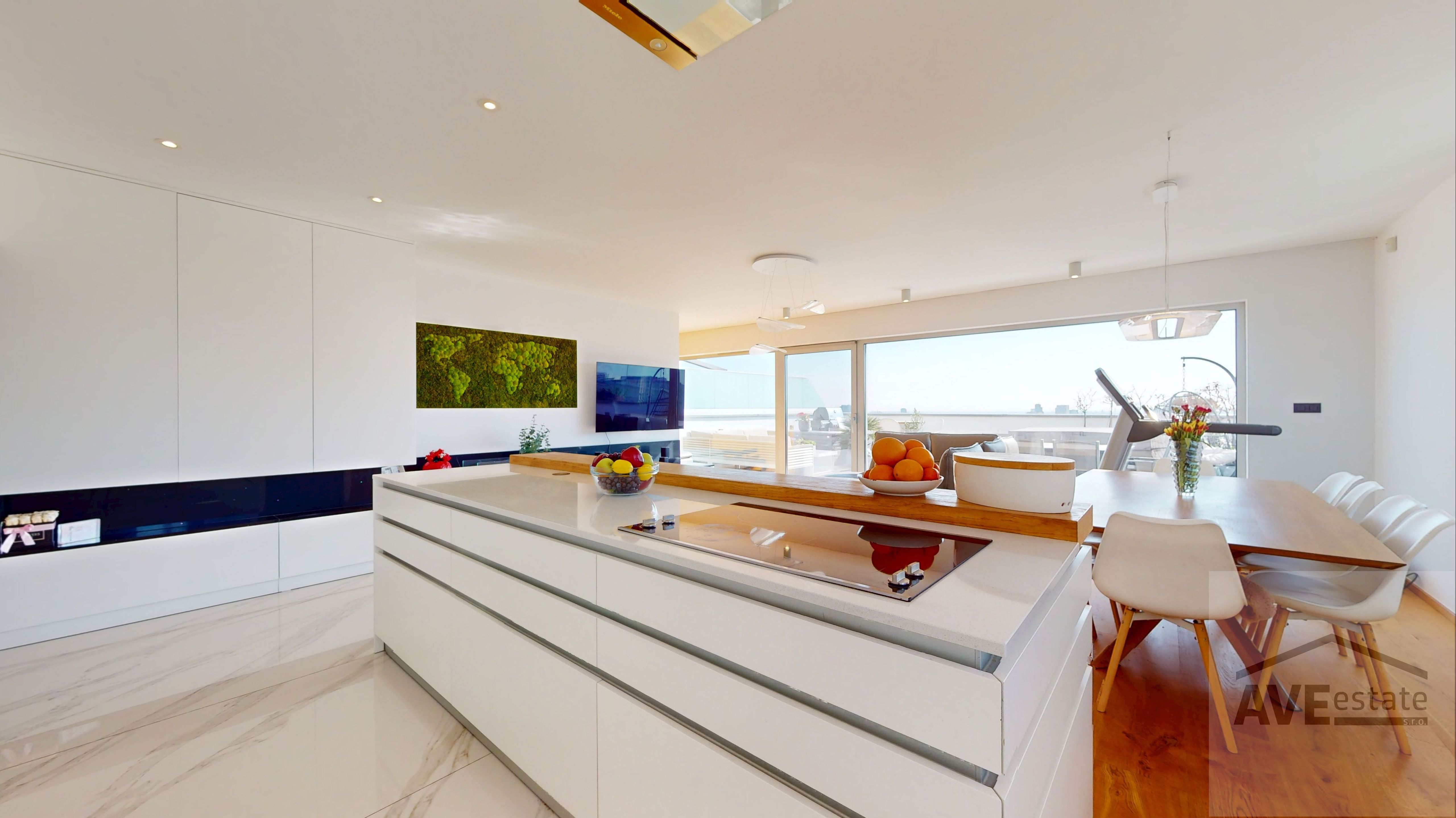 Byt sa nachádza na 4. poschodí z 5 v komornej vile s výťahom, ktorý vedie priamo do garáže. Celková plocha nehnuteľnosti je 247 m², z čoho samotný byt má 144 m².
