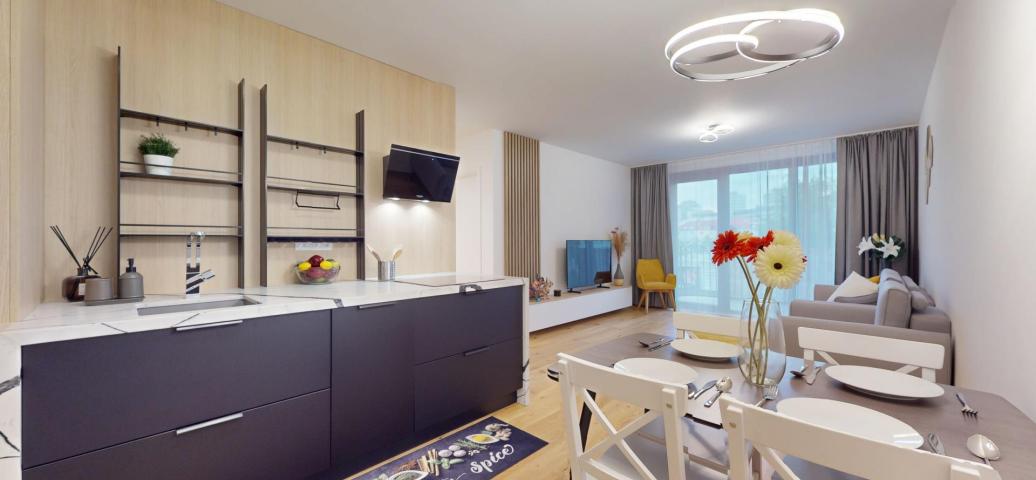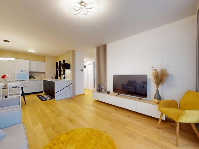 AVE estate Vám ponúka na predaj nový, neobývaný a kompletne zariadený 2 izb. byt s kuchynskou linkou, balkónom a pivničnou kobkou o celkovej výmere 59,42 m2 v prestížnom rezidenčnom komplexe ZWIRN 3. 2 izb. byt na 4/4 NP., dispozícia orientovaná pohľadovo na západ z obývacej časti-balkóna/izby. • Interiér = 52,35 m2, vstupná chodba s priestorom na vstavanú skriňu, priestranná obývacia izba spojená s kuchyňou a vstupom na balkón, samostatná spálňa, samostatná kúpeľňa so sprchovacím kútom, radiátorom, umývadlom a WC • Exteriér-balkón = 4,95 m2, dlažba, ambientné osvetlenie • Pivničná, plechová kobka = 2,12 m2 Byt sa predáva kompletne zariadený a zahŕňa: - nábytok - kuchynskú linku na mieru - kvalitná drevená podlaha - veľkoformátový keramický obklad v kúpeľni a WC - veľkoformátovú gresovú dlažbu v kúpeľni a WC - dizajnové svietidlá - zrkadlá - vstavané skrine - bezfálcové interiérové dvere - zvukovo a tepelno-izolačné hliníkové okná - elektricky ovládané exteriérové žalúzie - protipožiarne bezpečnostné dvere • Kúrenie: Podlahové kúrenie • Chladenie: Stropné chladenie • Vetranie: Centrálne vetranie s rekuperáciou • Smart Riešenia: Kúrenie a chladenie bytu môžete ovládať cez riadiacu jednotku ale aj cez bezplatnú mobilnú aplikáciu Poloha projektu poskytuje výbornú dostupnosť do centra mesta, kompletnú občiansku vybavenosť a bezproblémové napojenie na obchvat. Cena: 384 400€ Ku bytu je možné dokúpiť parkovacie miesto v podzemnej garáži bytového domu za cenu 42 000€. K cene bude pripočítaná odmena pre RK. V odmene pre RK je zahrnutý kompletný právny servis, štandardné poplatky za prevod vlastníckych práv a riešenie kompletnej agendy až po prevzatie. DÔLEŽITÉ: V tomto rezidenčnom komplexe ponúkame až 3 dvojizbové byty! Pozrite si aj zvyšné dve ponuky a vyberte si ten pravý pre Vás. #byvanie #nehnutelnosti #aveestate #reality #realestate #predaj #prenajom #bratislava #byt #dom #pozemok #realitnytrh #realitnymakler #realitka #rodinnydom #staremesto #košická #kosicka #svätoplukova #svatoplukova #vydrica #terasa #posedenie #rekuperacia #stropnechladenie #klimatizacia #balkon #loggia #lodžia #yit #novostavba #luxusnebyvanie #dvojizbovybyt #centrum #nivy #ocnivy #staremesto #autobusovastanica